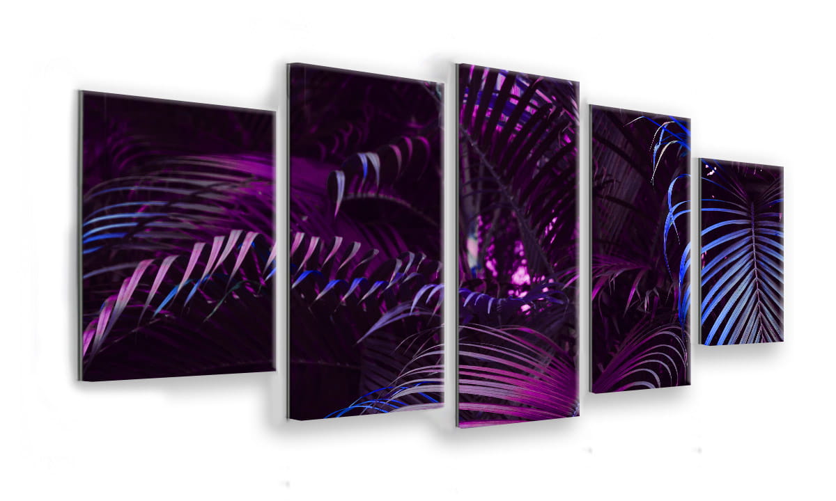 OBRAZ NA SZKLE 5-CZĘŚCIOWY - TYP E - Fioletowe liście