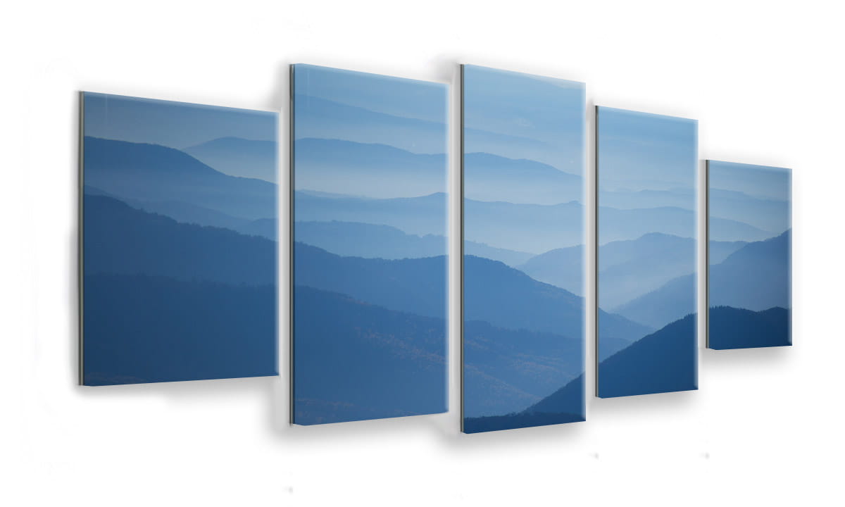 OBRAZ NA SZKLE 5-CZĘŚCIOWY - TYP E - Niebieskie góry