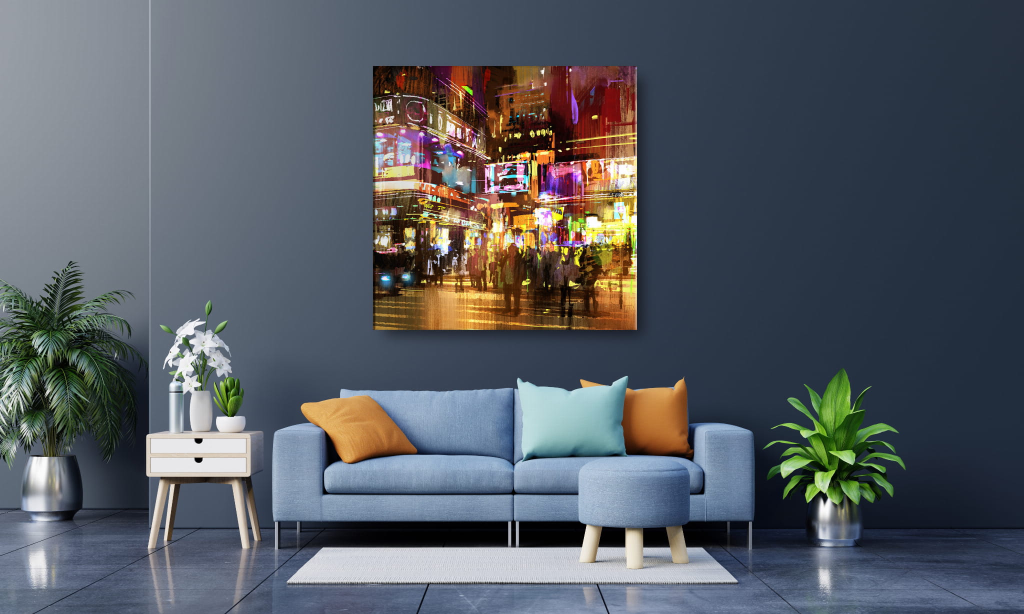 Obraz wygląda nowocześnie i nadaje się do ekspozycji w domu oraz biurze bez oprawiania w ramę.