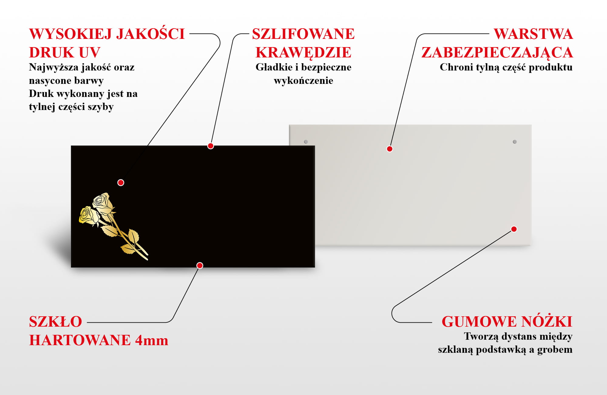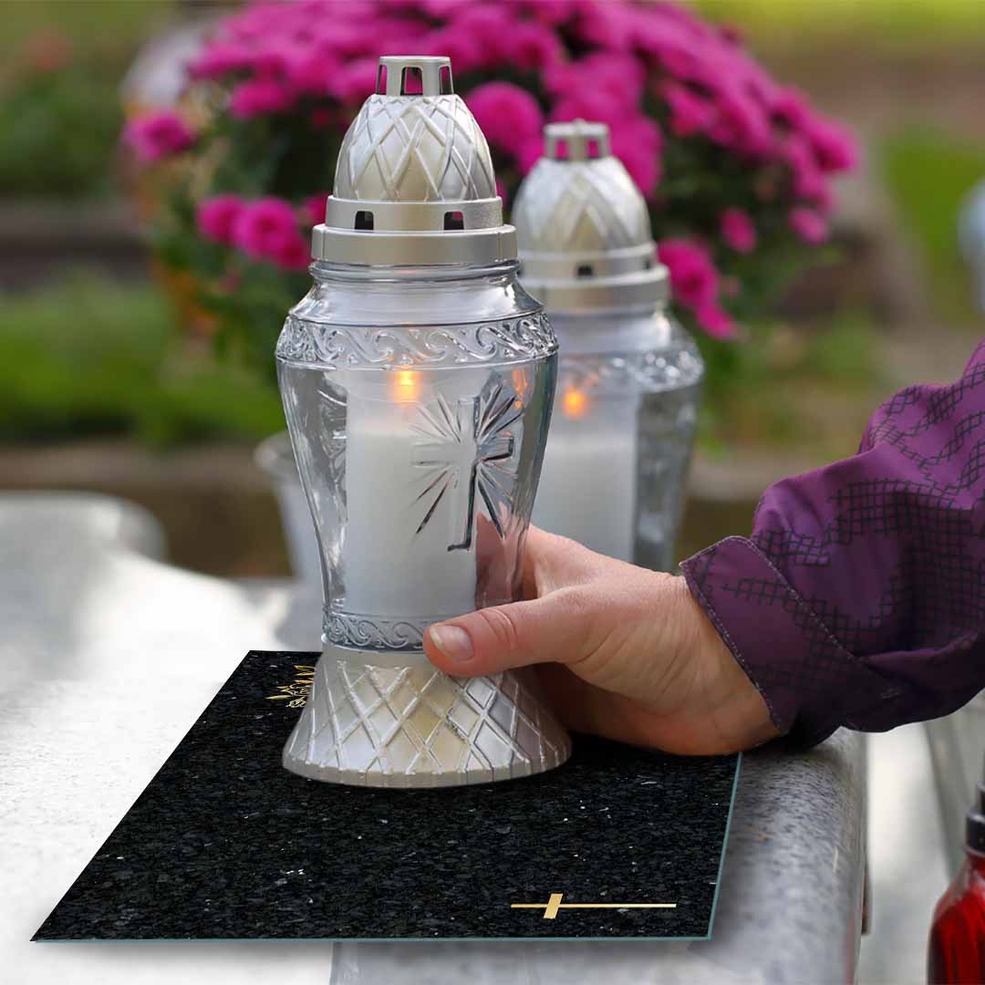 - Trwałość - podstawka pod znicze wykonana jest z certyfikowanego szkła hartowanego.