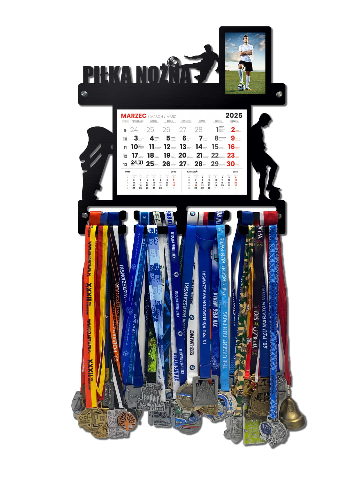 Wieszak na medale PIŁKA NOŻNA z kalendarzem i ramką na zdjęcie twoje imię dowolny tekst 386.1